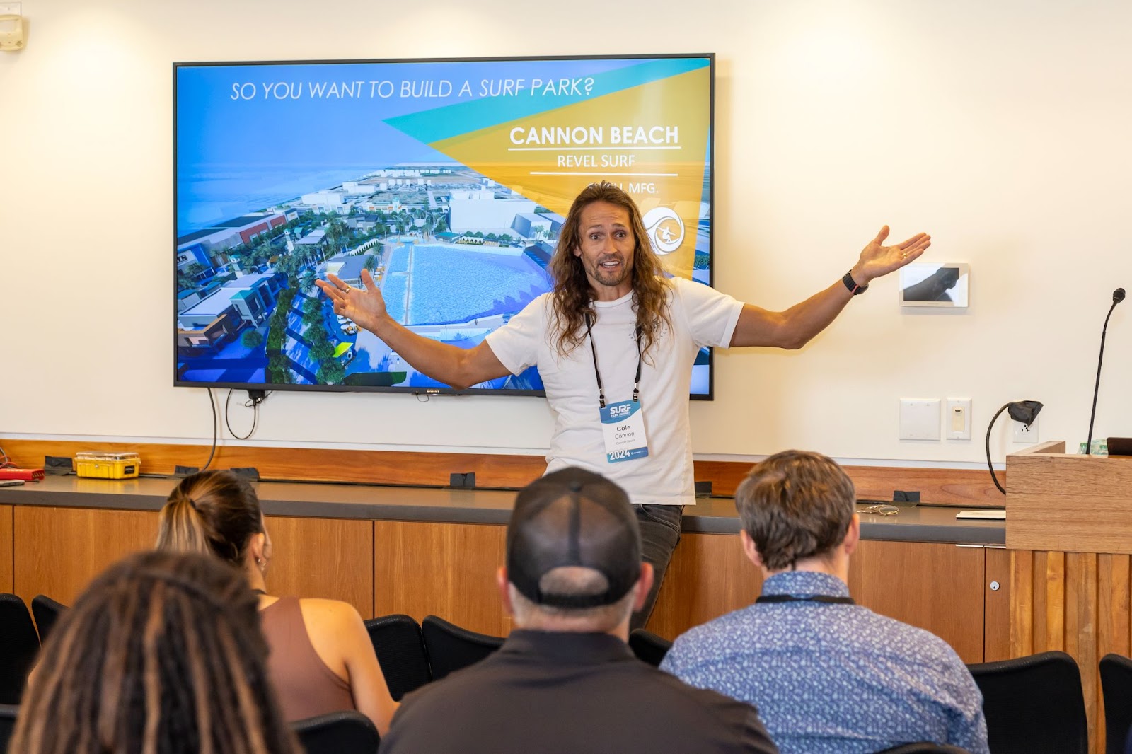 - So You Want to Build a Surf Park with Cole Cannon – A very anticipated discussion was centered around Cannon Beach, soon to be home of Revel Surf Park. Cannon Beach is a brand new Arizona development with businesses including retail and restaurants, all anchored by both a wave lagoon and a standing wave. The destination is a model for how more surf park projects could look in the future and many took note.