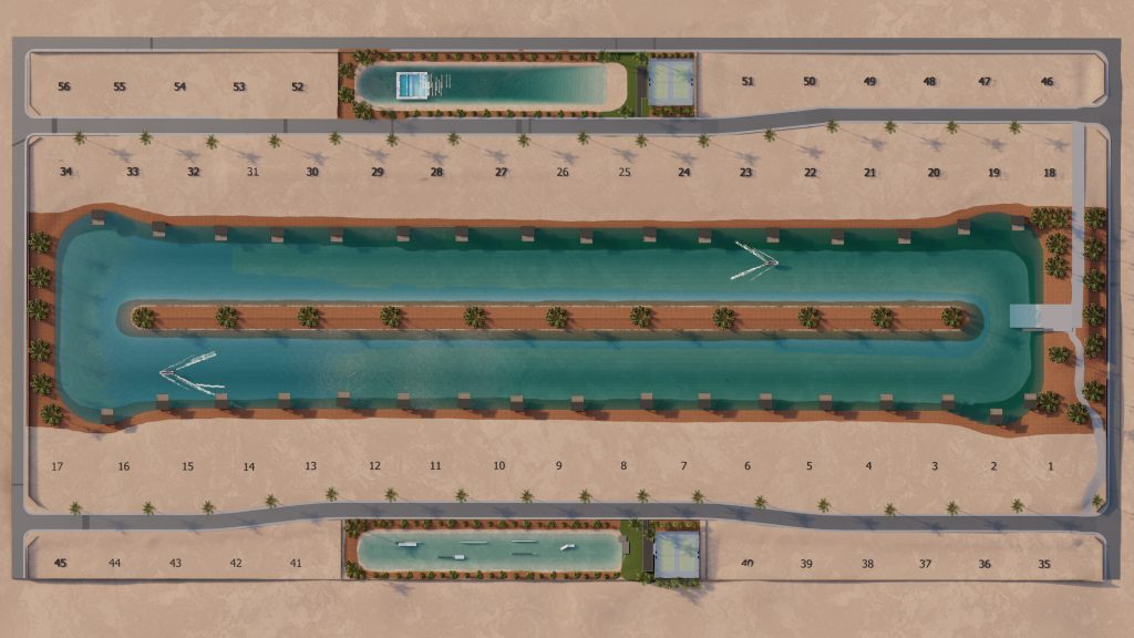 The 80-acre residential community will feature luxury beachfront property lots with private boat houses surrounding 3 premium man-made lakes. Each lake is highly engineered to eliminate water disturbance with custom sloped shorelines that ensure smooth glassy water all the time.