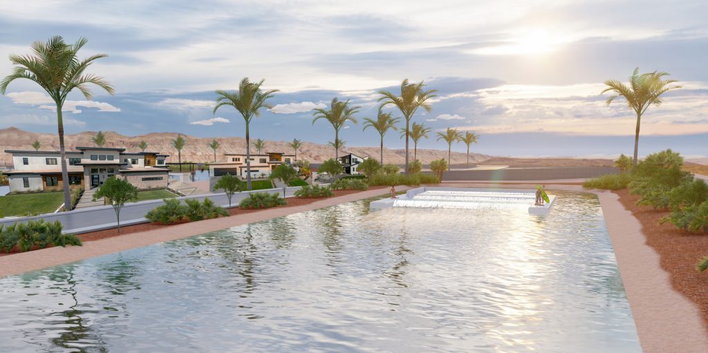 HURRICANE VALLEY, UTAH, MARCH 15th 2022– Immaculate Homes and Desert Lakes Development Group officially announced today that Southern Shores, their newest water sports centric luxury residential community, will feature the first ever private UNIT Surf Pool for its residents among many other exciting amenities. Southern Shores just also released availability on its residential lots for sale, and needless to say, they are moving rather quickly. The community is on target to be making waves in the fall and has officially begun construction on its premium man-made lakes.