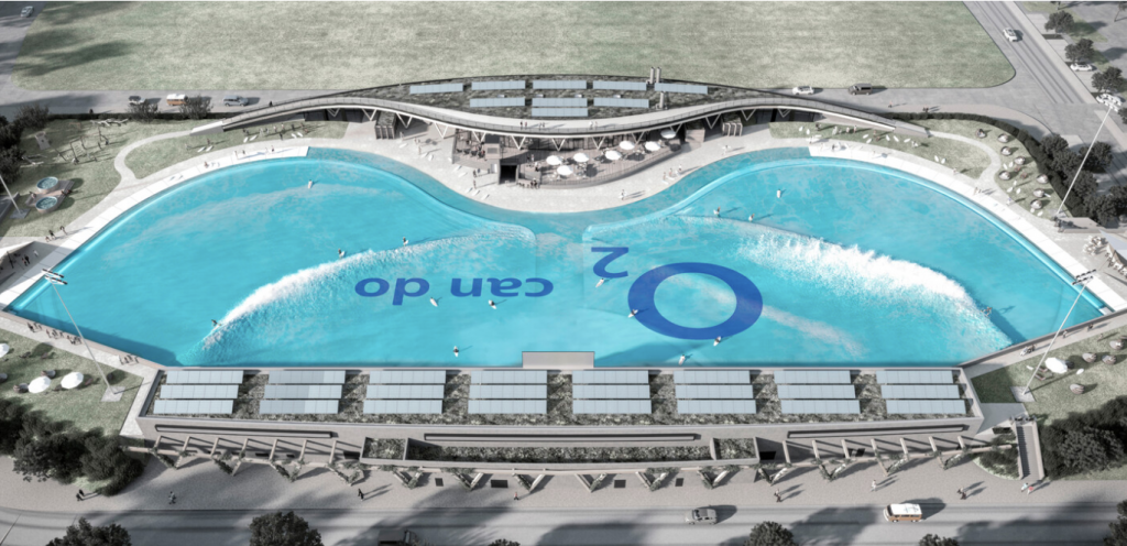 Obviously, Europe is going to experience more precipitation and less evaporation than the Coachella Valley so let’s be very conservative and assume the same facility in Coachella Valley would use 3.5x the water. That would be 15.75 million gallons. Palm Springs Surf Club estimates it will use 3 million gallons per year, this seems very low and apparently involves a filtration system that reuses backwash water and doesn’t require maintenance draining and refilling. DSRT Surf’s large Wavegarden 52 system, given that Wavegarden Coves no longer require annual maintenance drain and refill (6.9 million gallons for a basin of this size), estimates it will use 16.9 million gallons per year, but will completely offset the water use by removing 1 million square feet of unnecessary turf from the adjoining Desert Willow Golf Course, replacing it with xeriscaping and native drought-tolerant plants. In fact these initiatives are set to save the project 34 million gallons of water per year, a net saving of 17.1 million gallons (enough to supply another surf lagoon of the same size). The reduced scope KSWaveCo facility at Coral Mountain, which was ultimately rejected, estimated it would use 39 million gallons per year.