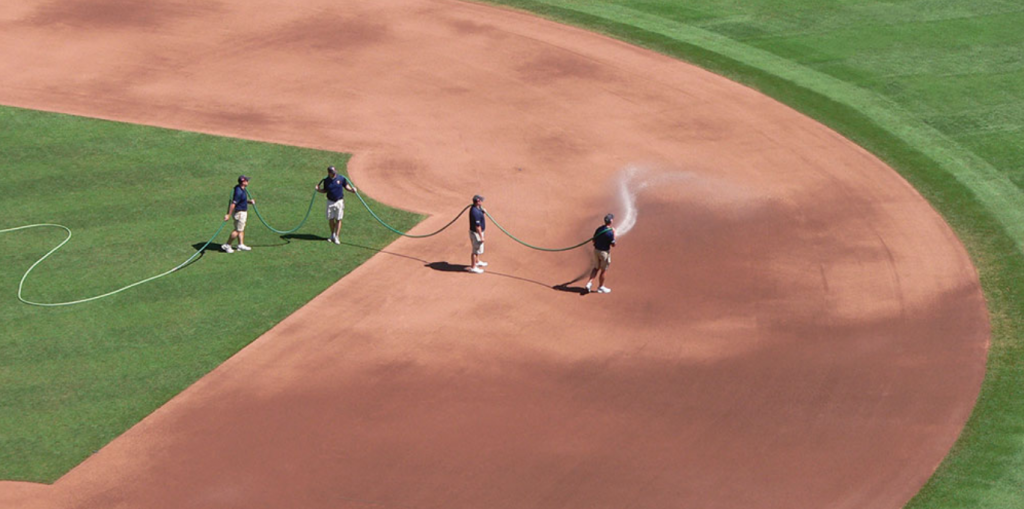 There are seven adjoining baseball fields in my local little league facility in San Diego and there are more than 800 little leagues in California alone. A little league field is considerably smaller than a regulation field at 1.5 acres, assuming the same proportion of turf to total area as a regulation field, that is 0.825 acres of turf for a little league field. 0.825 acres is 33% of 2.5 acres. 33% of the  62,500 gallons used on a regulation field is 20,625 gallons per week and 1.73 million gallons per year per field. With the 7 fields in my local league’s complex that’s 7.51 million gallons per year.