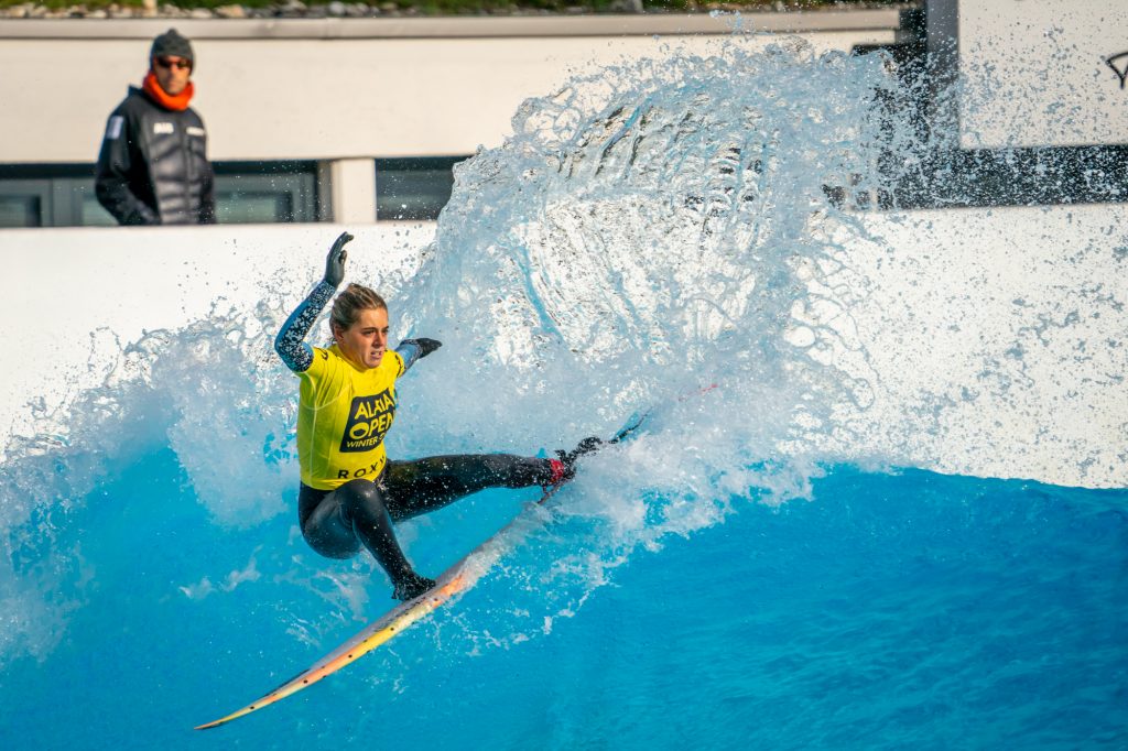 The second edition of the Alaïa Open Winter Cup wrapped up this past weekend at Alaïa Bay at the base of the Swiss Alps, much to the delight of competitors and organizers who hailed the action-packed competition as the best so far. Boasting an international field, it was Brazilian Michel Roque and European WSL Junior Champion Janire Gonzalez Etxabarri who were victorious in the open divisions, while Portuguese Maria Salgado and English Lukas Skinner claimed the junior titles.