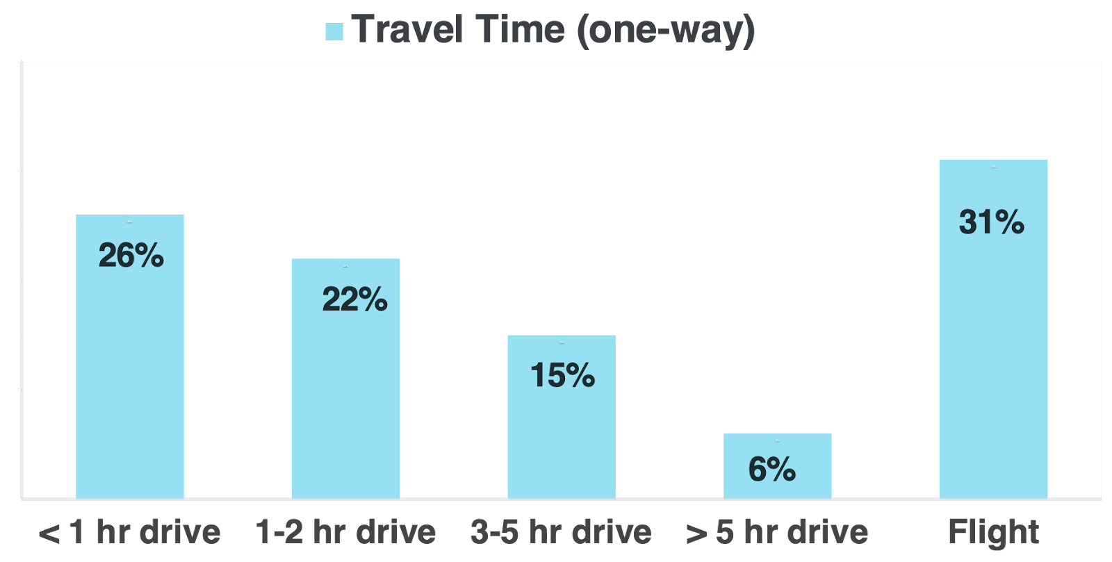 Surfers are, on average, traveling multiple hours with one or more other people to reach their target surf park. 31% are taking at least one flight to reach a park, more than any other category of travel (see figure 3 below). There are significant differences between regions and surf parks visited.